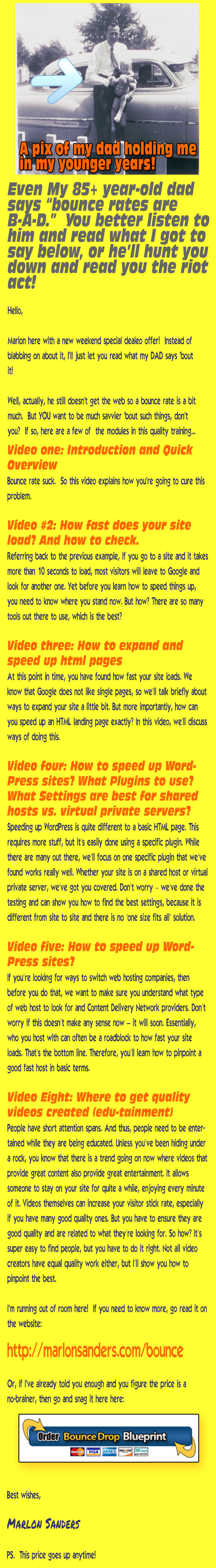 New Weekend Special -- Even my 85+ dad says "bounce rates are BAD"